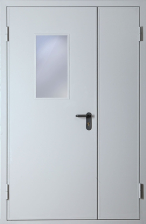 Полуторапольная противопожарная дверь со стеклом EI 60 (RAL 7035)